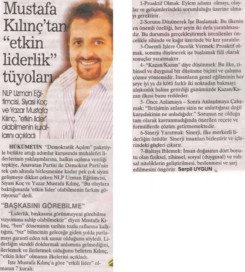 Mustafa Kılınç’tan “Etkin Liderlik” Tüyoları–Sabah–04.11.2009 Mustafa Kılınç’tan “Etkin Liderlik” Tüyoları–Sabah–04.11.2009